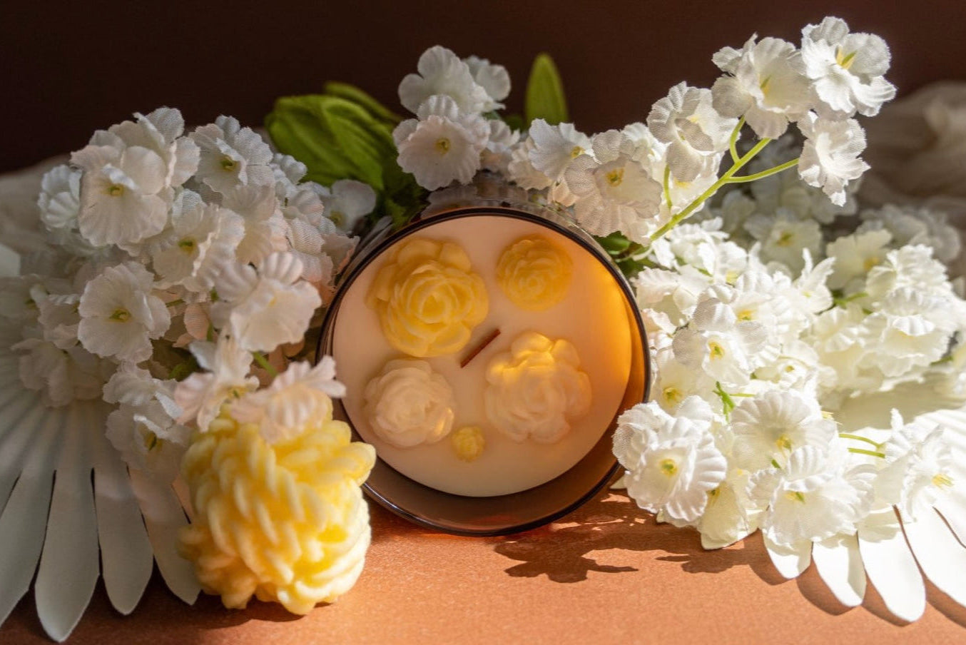 Blended with a clean-burning soy wax that is free from harmful chemicals.